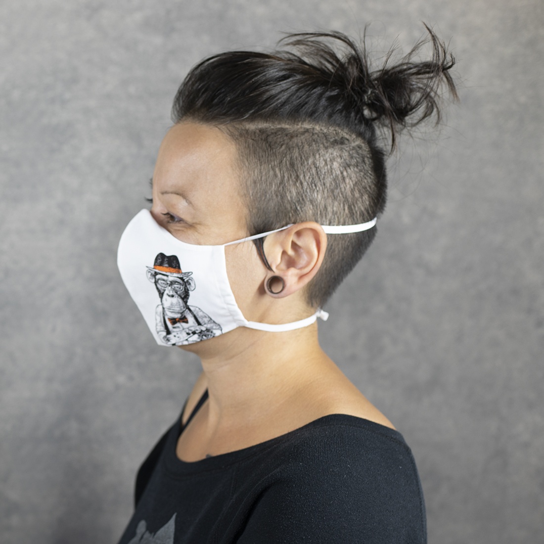 100% Bio-Baumwolle. Mehrwegmaske. Zwei-lagig. Zweifarbiger Druck. Loops / Gummibänder, die über den Kopf gezogen werden und nicht hinter den Ohren getragen werden. Faire Löhne in der gesamten Lieferkette! Made in Portugal / EU. Für etwas größere Gesichter optimal.